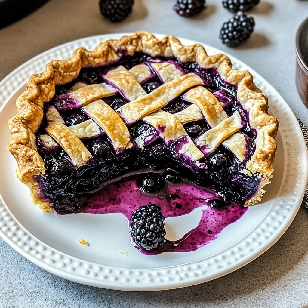 Imagine a warm slice of blackberry pie, its sweet and tangy filling bubbling with juicy blackberries, all nestled in a perfectly flaky crust that crumbles delightfully with each bite. The aroma wafts through the air, inviting you to savor the moment as the vibrant flavors dance on your tongue, creating a symphony of taste that is as comforting as it is exhilarating.