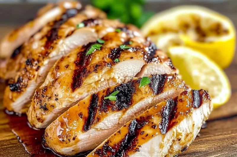 This juicy grilled chicken recipe is perfect for meal prep, allowing you to savor the delightful flavors any day of the week. To prep in advance, simply whip up the marinade by combining 1 cup of extra virgin olive oil, 1/4 cup of low sodium soy sauce, 2 tablespoons of honey, 2 tablespoons of apple cider vinegar, minced garlic, black pepper, paprika, salt, and oregano in a bowl. Once mixed well, place 4 boneless and skinless chicken breasts in a resealable plastic bag or shallow dish, pour the marinade over them, seal or cover, and refrigerate for up to 24 hours to enhance flavor. When you’re ready to grill, preheat your grill to medium-high heat and cook the marinated chicken for 6-7 minutes per side until it reaches an internal temperature of 165°F (75°C). After grilling, allow it to rest for 5 minutes before slicing and serving. With these easy steps, you can enjoy delicious chicken on the grill recipes with minimal effort!