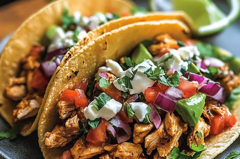These chicken tacos aren’t just a meal; they’re an experience, evoking memories of backyard gatherings and laughter around the grill. Whether it’s a casual weeknight dinner or a lively weekend celebration, these tacos are sure to steal the show, making every bite an unforgettable adventure filled with joy and deliciousness.