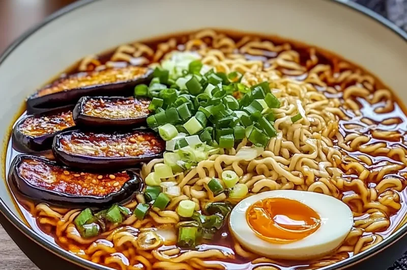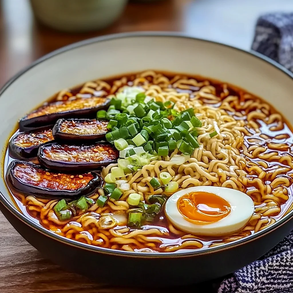 Imagine diving into a steaming bowl of Eggplant Ramen Bowl, where the rich aroma of savory broth mingles with the smoky essence of roasted eggplant, creating a symphony of flavors that dance on your palate. Each slurp reveals tender noodles intertwined with vibrant, fresh vegetables, offering a delightful crunch that perfectly complements the creamy texture of the eggplant.