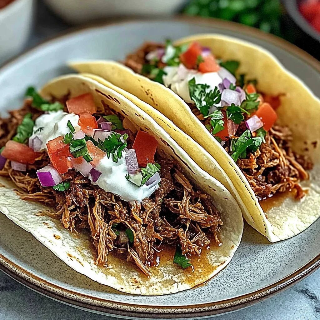 Imagine sinking your teeth into a warm tortilla enveloping savory, shredded beef tacos that burst with flavors and aromas, transporting you to a bustling Mexican street corner. The succulent meat, seasoned to perfection, dances with spices that awaken your senses, while the fresh toppings add a crunchy contrast that makes every bite an irresistible delight.