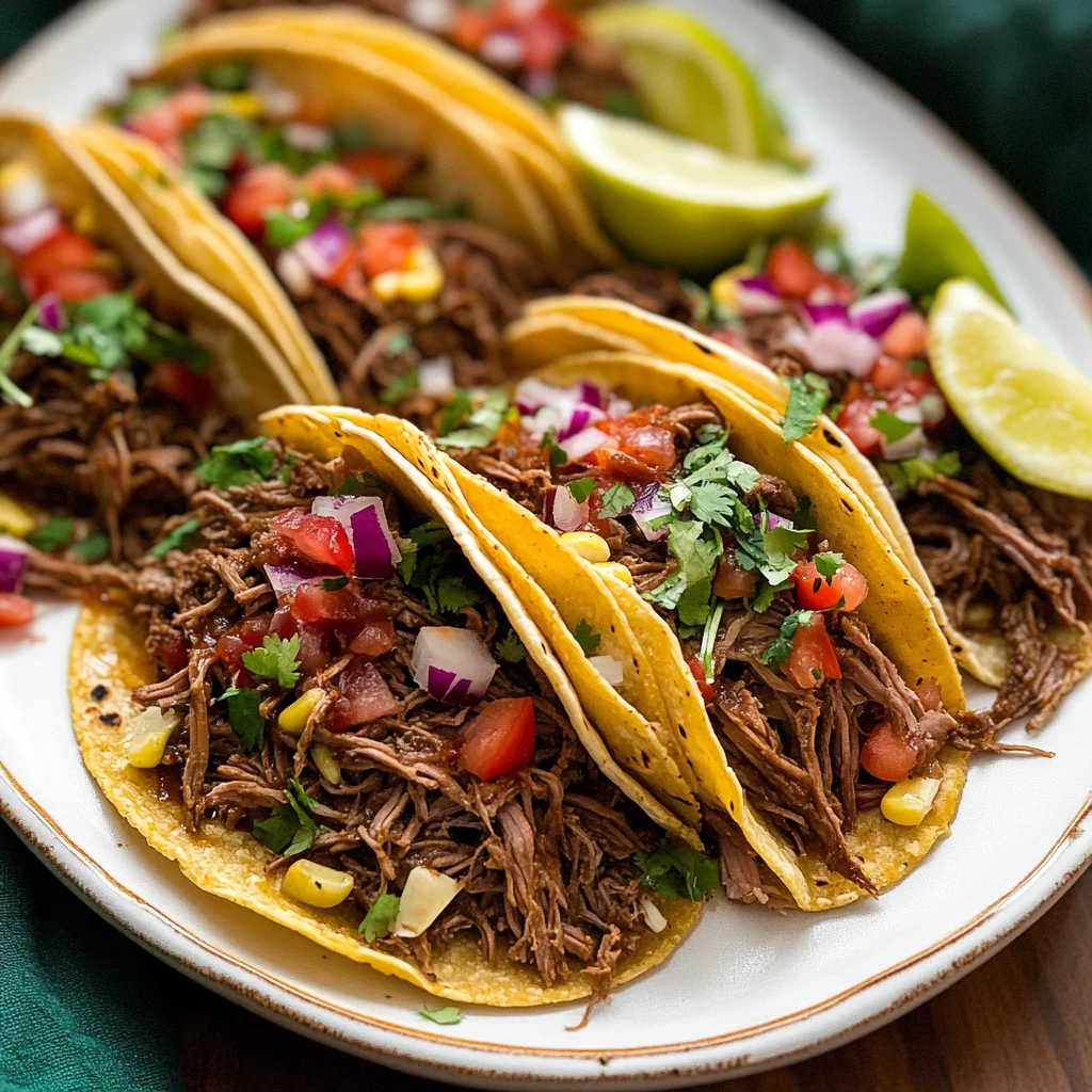 Imagine sinking your teeth into a warm tortilla, bursting with tender, succulent shredded beef that melts in your mouth, while vibrant toppings dance on your palate. The aroma wafts through the air, teasing your senses and promising an unforgettable flavor experience that’s perfect for any gathering or cozy night in.